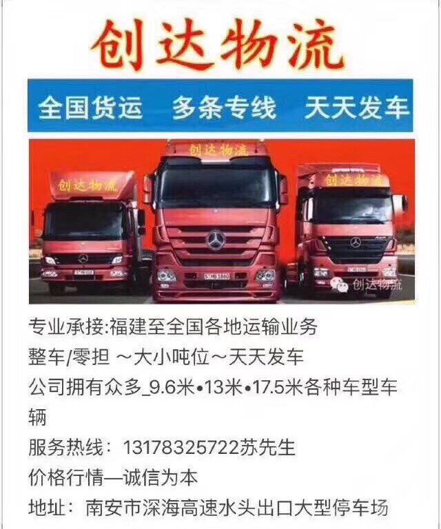 承接全國各地(整車零擔)汽運業(yè)務(wù)。服務(wù)熱線:13178325722蘇。