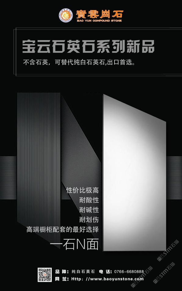 寶云崗石,2005年誕生在中國石材之都——云浮,現(xiàn)擁有寶云、安迪、磨瑪三大現(xiàn)代化生產(chǎn)基地,總占地面積10余萬平方米,擁有8條先進的全自動人造石生產(chǎn)線,4條全自動石英石生產(chǎn)線。