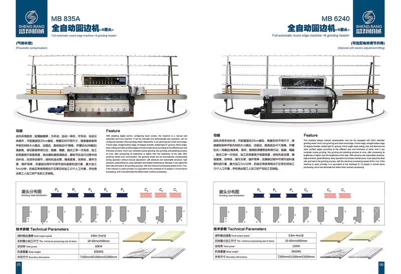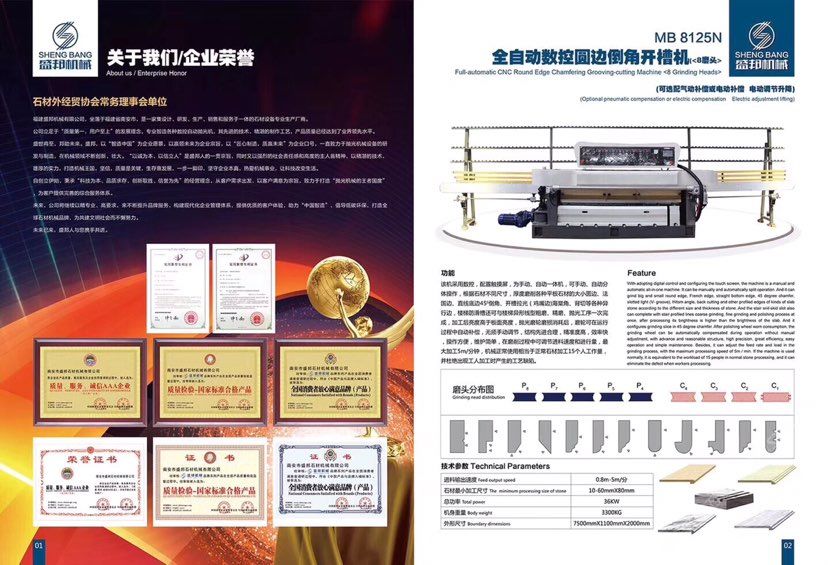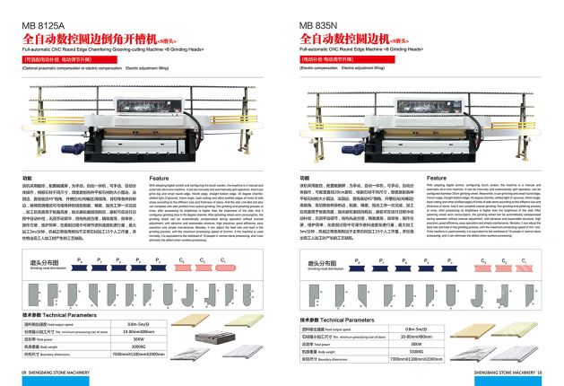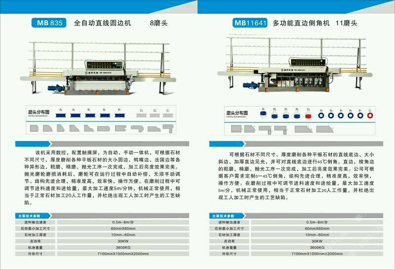 公司主營:‘’全自動數(shù)控圓邊機(jī)、全自動數(shù)控地腳線機(jī),多功能直邊倒角機(jī)’‘全自動直邊倒角機(jī)‘’全自動臥式磨邊機(jī)’也可根據(jù)客戶需求定制各種全自動石材加工機(jī)械!磨邊機(jī)、拋光機(jī)合二為一,粗磨、精磨、拋光一次完成,拋光后效果高于板面光潔度!拋光磨輪磨損消耗后,磨輪可在運(yùn)行過程中自動補(bǔ)償,無須手動調(diào)節(jié),不會產(chǎn)生手工操作中出現(xiàn)的工藝缺陷!結(jié)構(gòu)先進(jìn)合理!精準(zhǔn)度高,效率快,操作方便!維護(hù)簡單快捷! 盛邦機(jī)械團(tuán)隊(duì)期待與您攜手并進(jìn),為您降低加工成本,創(chuàng)造財(cái)富!使用我司全自動磨邊拋光機(jī)械成本每米:人造石每天按工作8小時(shí)計(jì)算,一分鐘可磨4米,8小時(shí)可磨1920米,每米成本0.4元,大理石8小時(shí)可磨1300米,每米成本0.6元,花崗巖8小時(shí)可磨9百多米,一分鐘可磨2米,每米成本0.8元,(成本含水電費(fèi),人工,磨輪損耗等) 操作簡便,雜工即可,精準(zhǔn)度高,無工藝缺陷,售后維護(hù)方便,簡單。歡迎到水頭鎮(zhèn)弘泰機(jī)械C區(qū)2號來考察試機(jī)。聯(lián)系人:方經(jīng)理18016666181