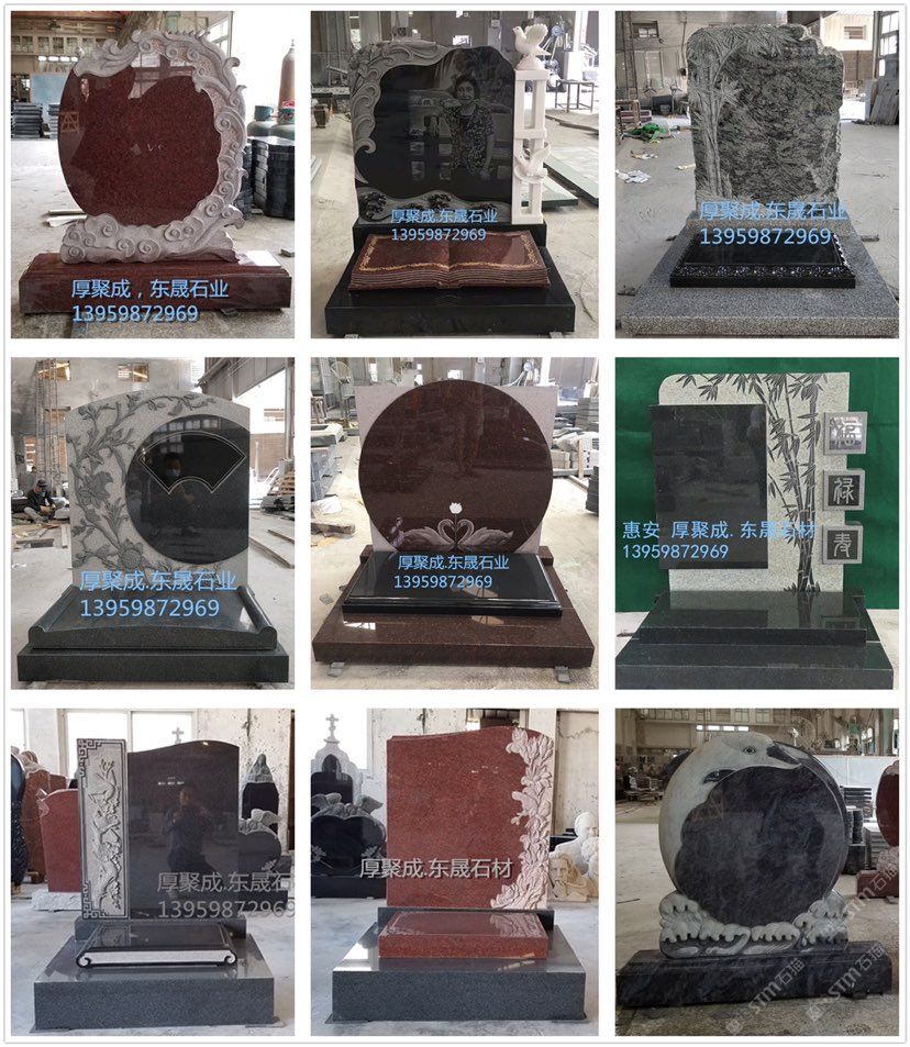 厚聚成石材惠安東晟工廠位于福建惠安蓮西工業(yè)區(qū),專業(yè)生產(chǎn)各種類型的墓碑。主要產(chǎn)品有中國(guó)墓碑,俄碑系列,美碑系列,歐碑系列。中國(guó)墓碑,分為傳統(tǒng)墓碑,藝術(shù)墓碑,豪華墓碑及墓飾系類,可以接受定制,歡迎來工廠實(shí)地考察,聯(lián)系電話:13959872969,何先生。