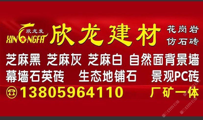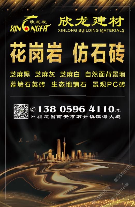 南安市欣龍建材發(fā)展有限公司,位于建材之鄉(xiāng)—福建省南安市石井鎮(zhèn),公司旗下?lián)碛袃纱笾髁Ξa(chǎn)品:花崗巖?仿石磚。(一)花崗巖:廠礦一體,荒料?大板?成品精加工,一站式供應(yīng)。擁有芝麻黑、芝麻灰、芝麻白、銹石、蝦紅、小藍(lán)寶、藍(lán)寶石、泉州紅、永定紅、福壽紅、福建青、鐘山青、喬治亞灰、G606、G617等品種,承接幕墻干掛、園林景觀、市政廣場、機場高鐵、別墅豪裝、酒店精裝、異形雕刻、自然面背景墻等工程。為石而生,匯聚石尚生活! (二)仿石磚:戶外陶瓷厚磚,接受客戶需求定制。不是石材,更勝石材!抗壓強度高、抗凍性能好、防滑耐磨、綠色環(huán)保。擁有幕墻石英磚、生態(tài)地鋪石、景觀PC磚、環(huán)保熔巖板、陶瓷透水磚、水泥PC磚等系列產(chǎn)品。采用先進(jìn)的技術(shù)與工藝,融匯東西方精粹,不斷創(chuàng)新,將不同文化風(fēng)尚及搭配方式重新組合設(shè)計,開發(fā)現(xiàn)代新穎的產(chǎn)品,造就逼真無瑕的自然外觀質(zhì)感,滿足全球客戶不斷發(fā)展的個性化需求。產(chǎn)品廣泛應(yīng)用于園林小區(qū)、商業(yè)地產(chǎn)、公園廣場、市政道路、高鐵地鐵、酒店賓館、居家庭院、步行街、寫字樓、度假村、機場、學(xué)校、醫(yī)院、綠道等干掛鋪裝場所。因為專注,所以專業(yè)!