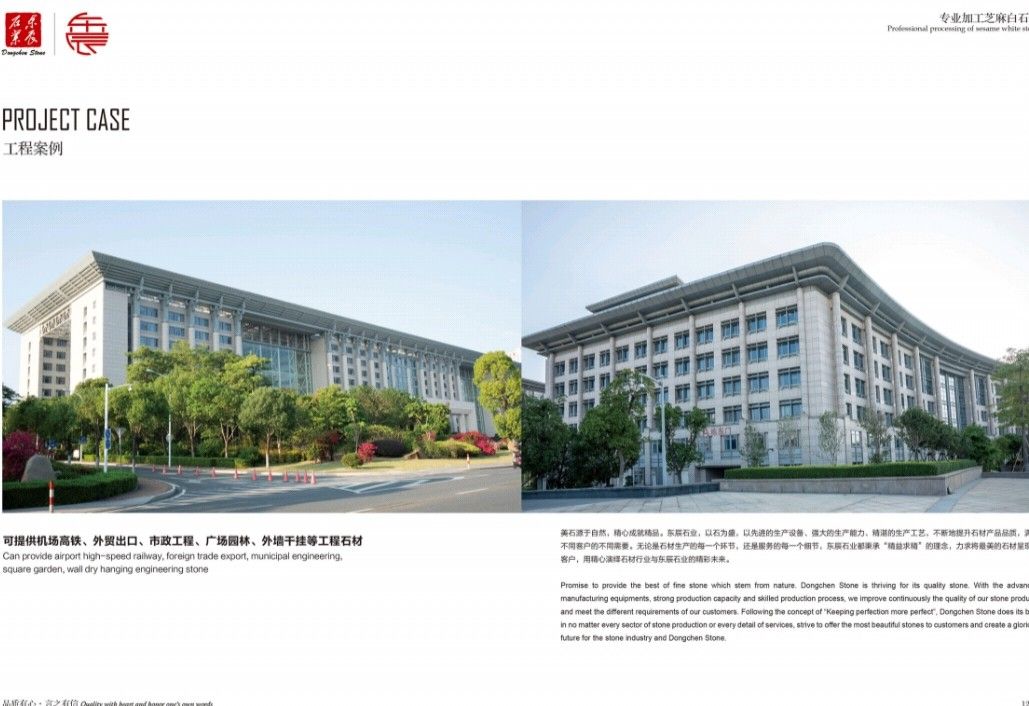 主營:承接高鐵機場、外墻干掛、廣場別墅、市政工程和外貿(mào)出口等各種工程板。 主營芝麻白G603、芙蓉白G602火燒面、光面、荔枝面、斧剁面、噴砂面、拉絲面、菠蘿面,水溝蓋板、雕刻板、路沿石、蘑菇石、擋車石、馬蹄石、冰裂紋、圓球、染色板等