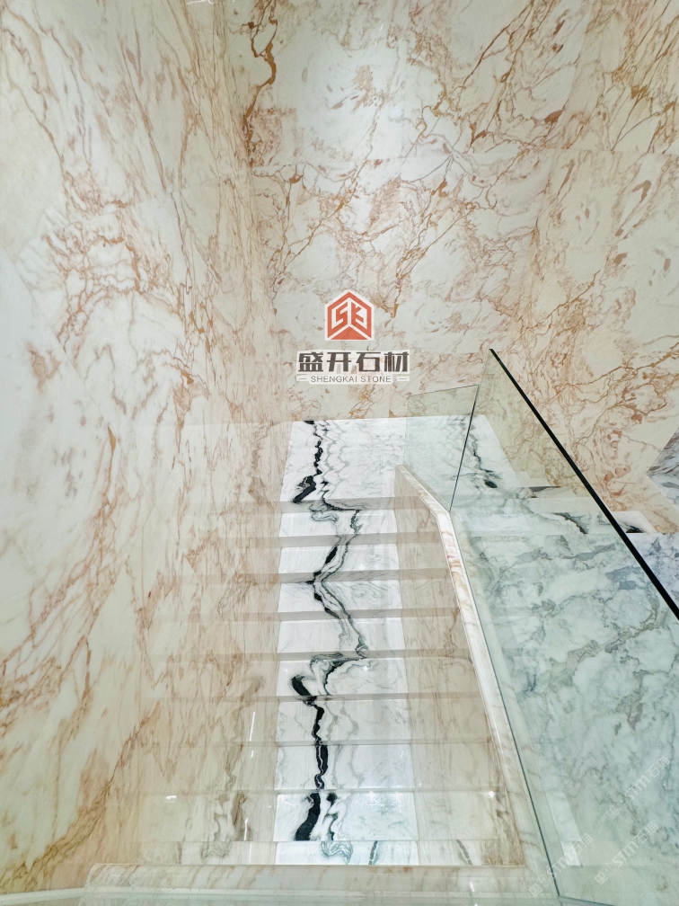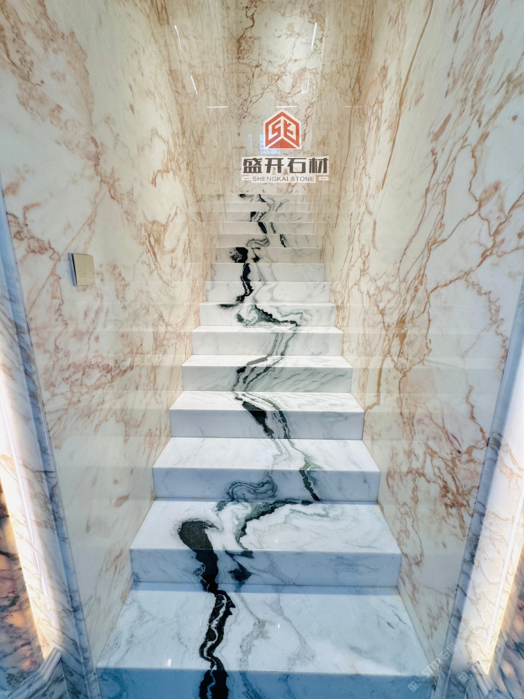 熊貓白樓梯,魚(yú)肚金門(mén)套,背景墻