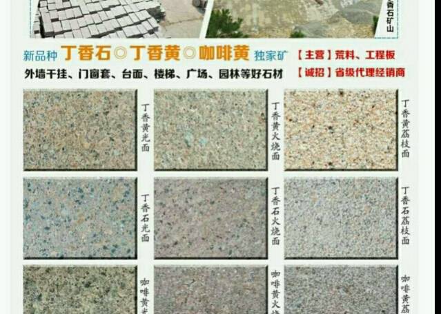 福建金湖石業(yè) 聯(lián)系人:楊先生    158****0557 查看 158****0557 查看 主營(yíng)范圍: 大板批發(fā)、荒料、異型加工、花崗巖加工、礦山、 企業(yè)地址:福建三明泰寧縣大龍鄉(xiāng)