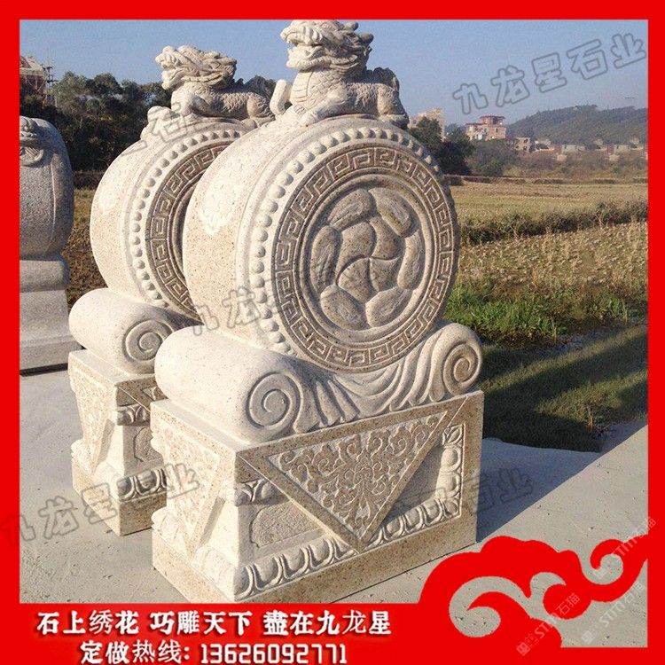 發(fā)布信息: 石雕圓形抱鼓石 門墩抱鼓石圖片及價格——九龍星石業(yè)。 石雕圓形抱鼓石的方圓有著不同的寓意,在古代,方形的門墩多為文官使用,圓形的門墩多為武官使用。門墩借助人物、草木、動物、工具、寓言、幾何圖案,石頭抱鼓石上面的瑞獸表達了四合院的建筑者們希望長壽、富貴、驅魔、夫妻美滿、家族興旺的美好心愿。獅和世諧音,雕九只獅子的圖案是九世同居,表示合家團聚、同堂和睦的祝愿。 石雕圓形抱鼓石上面的瑞獸有獅子、麒麟、大象等靈獸。古代,不同地位官階等級的門戶擺放的抱鼓門石是不同的,文官用書箱形、武官用獸吻形,而古代住所高管門前門墩石的石獅子等靈獸一般都比較大,象征著地位和財富。
