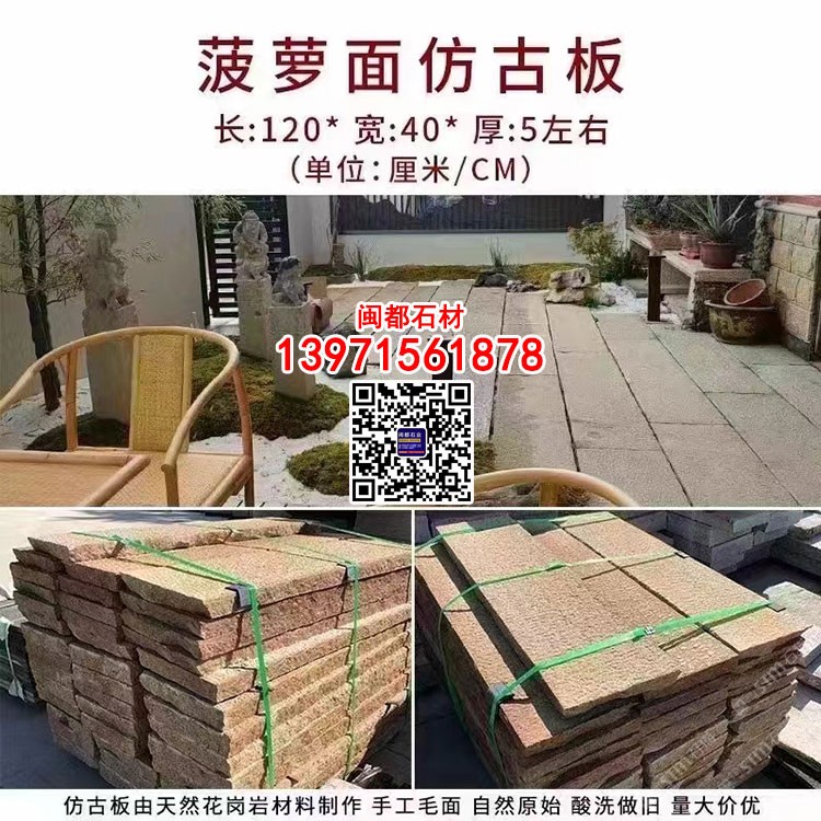 菠蘿面仿古板芝麻白G623花崗巖手工毛面酸洗做舊