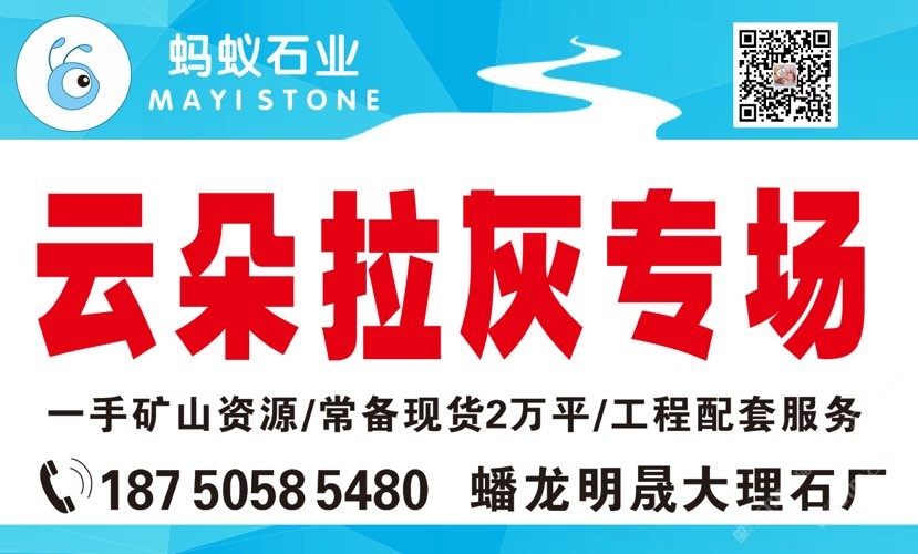 螞蟻石材 聯(lián)系人:黃    176****1214 查看 176****1214 查看 主營范圍: 大板批發(fā)、荒料、大理石加工、礦山、石材外貿(mào)、異型加工、 企業(yè)地址:福建泉州水頭鎮(zhèn)蟠龍明晟大理