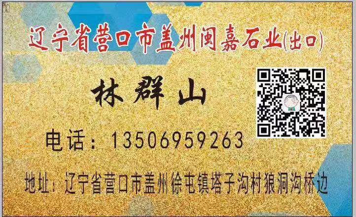 閩嘉石業(yè) 聯(lián)系人:小林    151****2229 查看 手機(jī)號(hào)碼:無 主營范圍: 花崗巖加工、異型加工、石材外貿(mào)、 企業(yè)地址:遼寧營口蓋州市徐屯鎮(zhèn)閩嘉石業(yè)