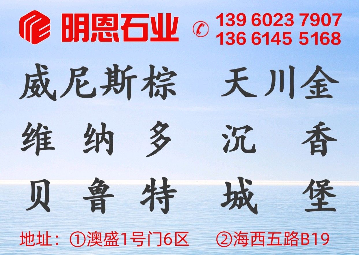 發(fā)布信息: 上海明恩石業(yè)是一家專業(yè)大理石批發(fā)和成品供應 1:外墻系列:貝魯特(溫莎米黃),城堡米黃,沉香米黃,維納多~~荒料,各種厚度大板,成品供應。 2:輕奢系列:威尼斯棕,威尼斯黑,范特西,意大利天川金 產(chǎn)品從國外荒料﹣光板﹣(承接)成品單,一條龍服務。公司秉承"信譽至上,量大,質(zhì)優(yōu),價廉"的原則,歡迎廣大新老客戶來我司參觀指導。