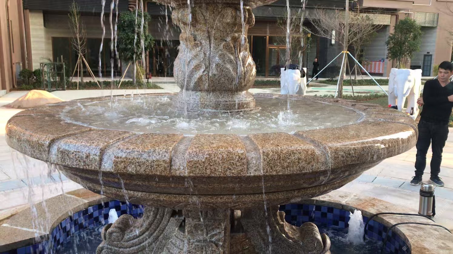 黃金麻,銹石,卡麥噴泉花缽風水石花盆欄桿石雕刻