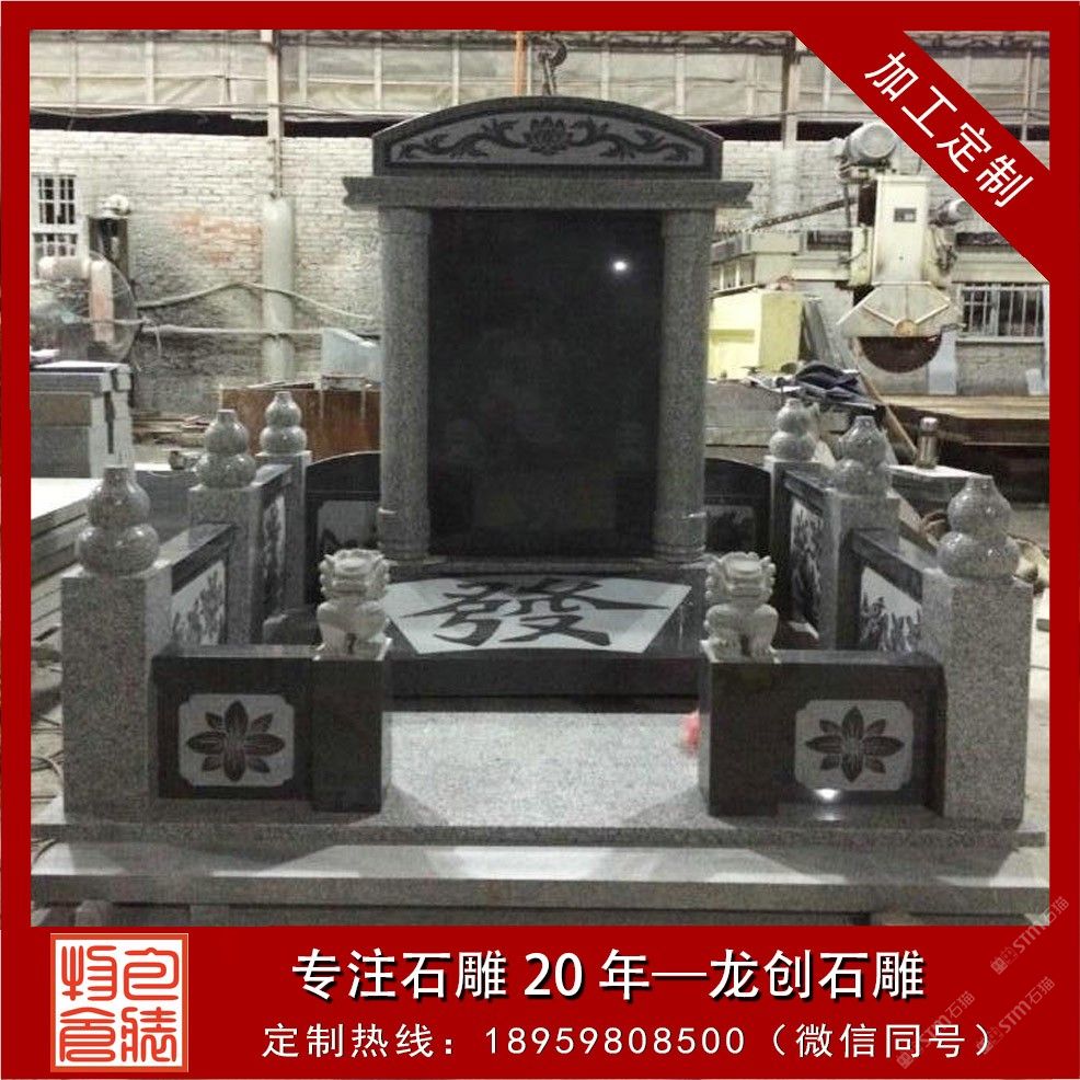 發(fā)布信息: 定制豪華墓碑 大型家族墓碑組合 請(qǐng)聯(lián)系電話(微信同號(hào)):18959808500 一座石雕墓碑的含義是它具有“留念”性含義,它是留念已去世的至親!在古代,關(guān)于尋常百姓來(lái)說(shuō),這種“留念”的方式僅僅是立一塊墓碑罷了?,F(xiàn)今,人們美學(xué)觀念的提高,對(duì)墓碑個(gè)性化藝術(shù)要求越來(lái)越高。因此,制作一座豪華氣派又兼具藝術(shù)的墓碑,只有專業(yè)的墓碑制作廠家才做得到!一般人是不可能獨(dú)立完成的! 福建省惠安縣龍創(chuàng)石雕工藝有限公司創(chuàng)建于2000年初。公司位于中國(guó)石雕之鄉(xiāng)——福建惠安。 我公司主要經(jīng)營(yíng)加工、銷售;石雕工藝品、石材制品;定制墓碑,水缽,花缽,欄桿,佛像等等。承接家族墓園工程;承接建筑幕墻工程、承接寺廟古建工程、園林古建工程設(shè)計(jì)與施工。
