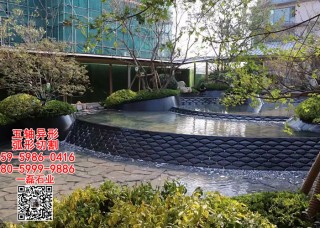 五軸弧形異形切割水池水景工程芝麻黑芝麻灰芝麻白石材