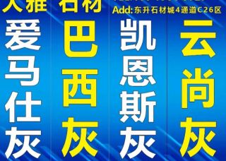 云浮飛龍石業(yè)主營(yíng)產(chǎn)品:愛瑪仕灰,凱恩斯灰,巴西灰,愛瑪仕灰(伊朗礦),愛馬仕(金),愛馬仕灰(土耳其礦),愛馬仕灰(淺藍(lán)底),愛琴海3,澳斯灰,澳洲黑棕,白冰玉3,卡洛拉企業(yè)地址:廣東云浮百家國(guó)際大板市場(chǎng)C區(qū)4-024